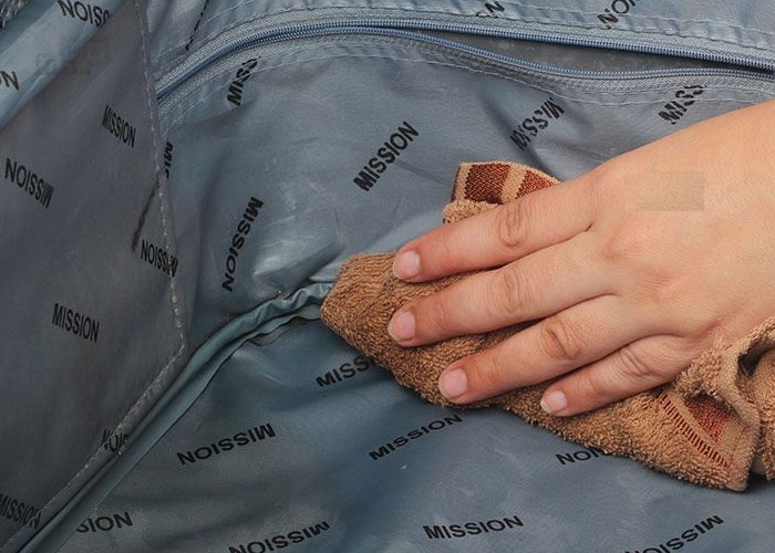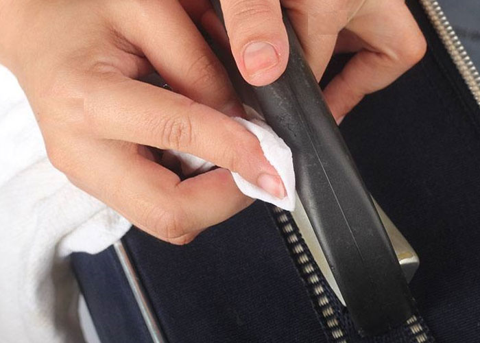 Đầu tiên, bạn cần bắt đầu vệ sinh từ bề mặt bên ngoài của vali. Thực hiện nhúng khăn vào dung dịch xà phòng bằng việc pha loãng một ít xà phòng nhẹ vào nước ấm trong một chậu. Tiếp theo, dùng khăn mềm đã nhúng vào dung dịch để lau bề mặt vali. Chú ý đến các vết bẩn, vết trầy xước và các kẽ hở. Nếu vali có các chi tiết trang trí hoặc logo, hãy nhẹ nhàng lau để không làm hỏng.