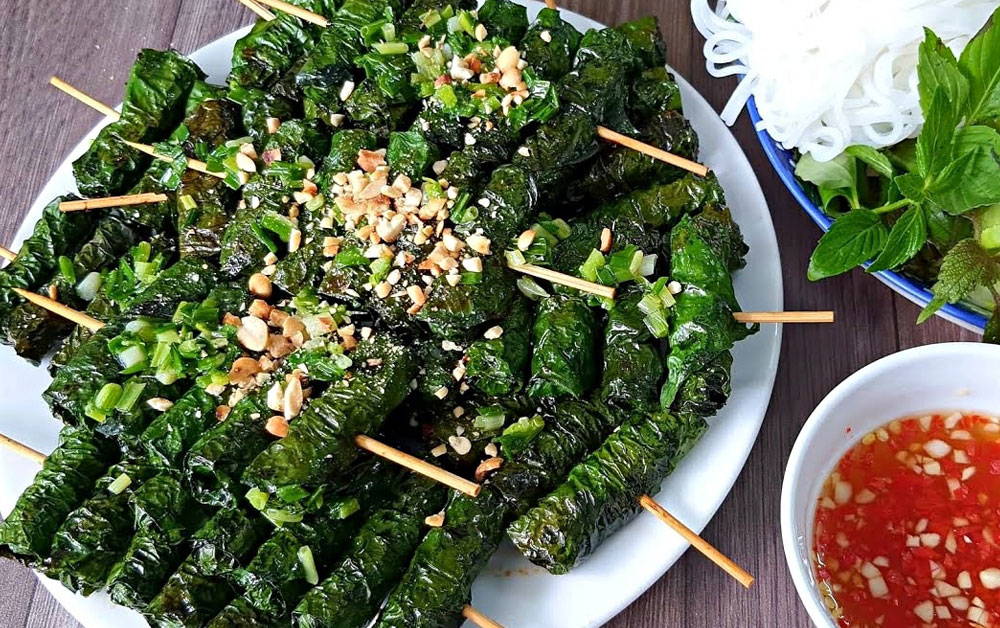 Món ăn "quyến rũ" mọi giác quan với những cuộn thịt bò băm nhỏ, được gói ghém cẩn thận trong lớp lá lốt xanh mướt. Khi nướng trên than hoa, hương thơm đặc trưng, nồng nàn của lá lốt lan tỏa, quyện cùng vị ngọt đậm đà của thịt, tạo nên một bản hòa tấu hương vị khó cưỡng.Chấm cùng mắm nêm pha chút ớt tỏi thì "ngon quên lối về". Đây là một món ăn vặt hấp dẫn hoặc một món nhậu "tốn mồi" tuyệt vời mà bạn không nên bỏ qua khi đến Hồ Núi Cốc Thái Nguyên.