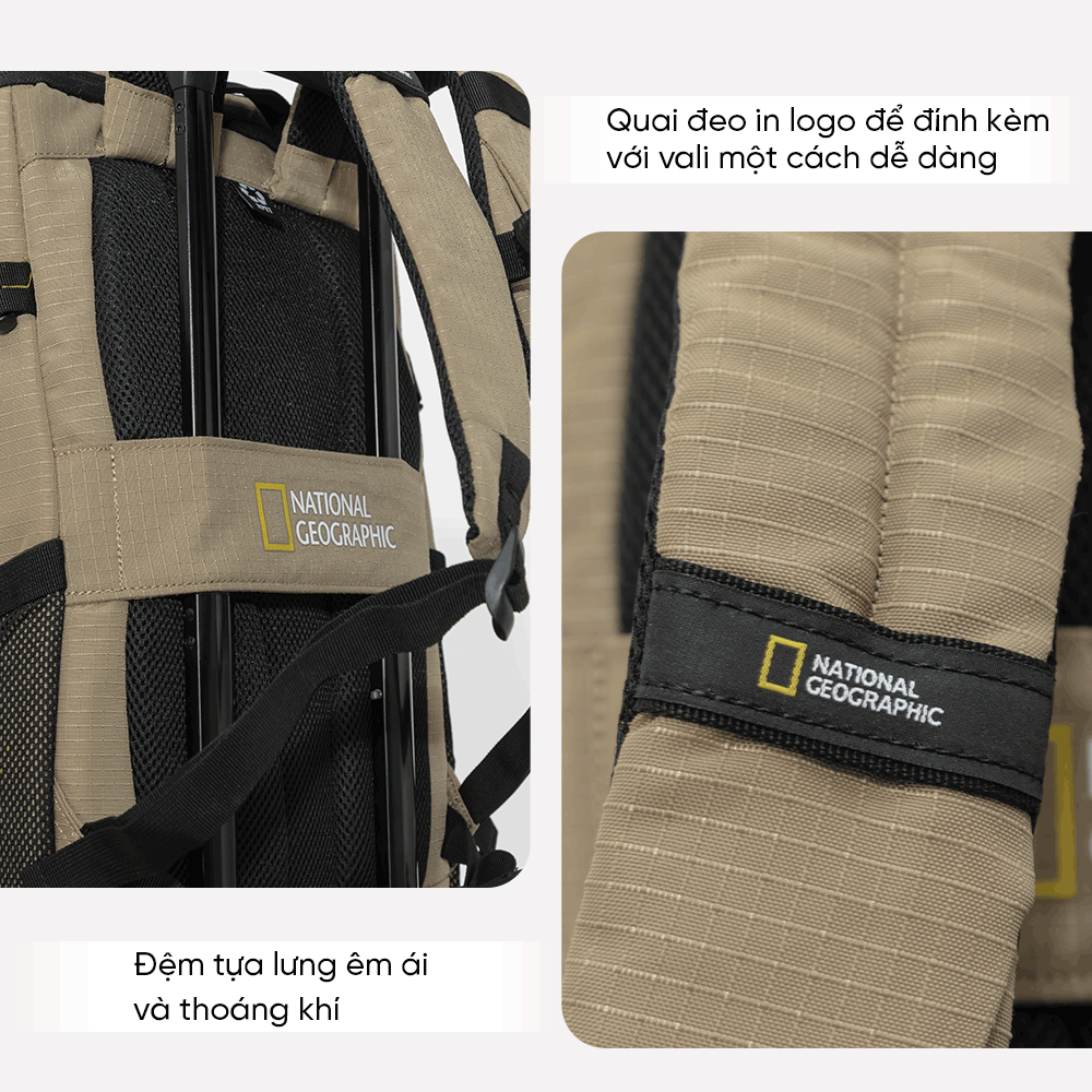 N21218 có đệm tựa lưng êm ái và thoáng khí, đi kèm với quai đeo in logo để đính kèm với vali một cách dễ dàng.