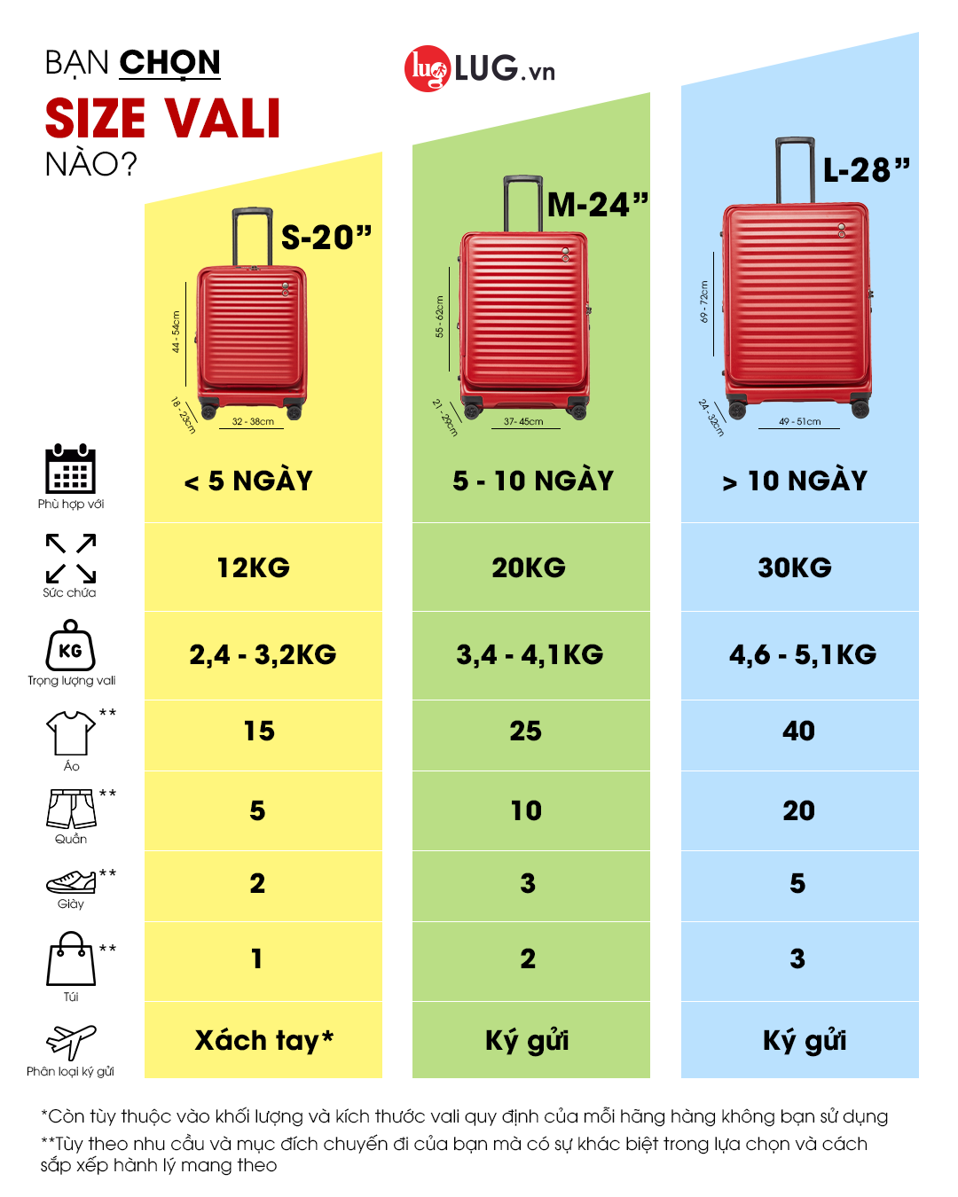 1. Chọn kích thước vali phù hợp với thời gian và loại chuyến đi