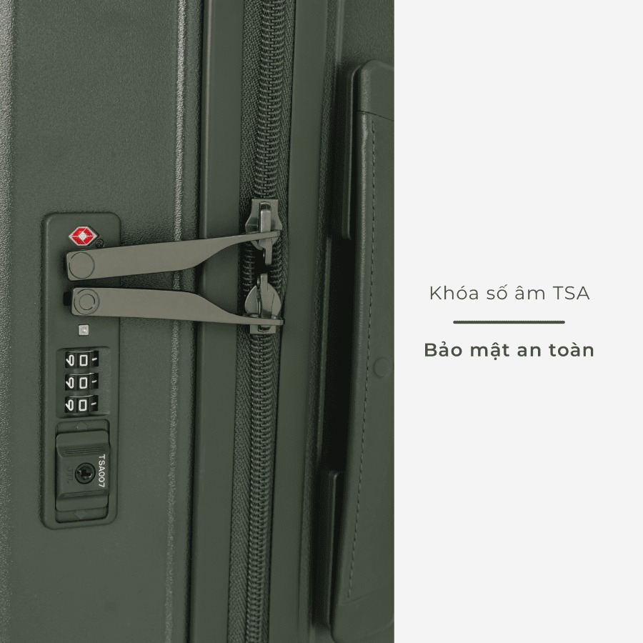 Khi đi du lịch nước ngoài, đặc biệt là các chuyến bay đến Mỹ, Canada hoặc châu Âu, vali có khóa số TSA là yêu cầu gần như bắt buộc. Đây là loại khóa đạt tiêu chuẩn của Cục An ninh Vận tải Hoa Kỳ, cho phép nhân viên an ninh mở vali bằng chìa chuyên dụng khi cần kiểm tra, mà không làm hư hại sản phẩm.