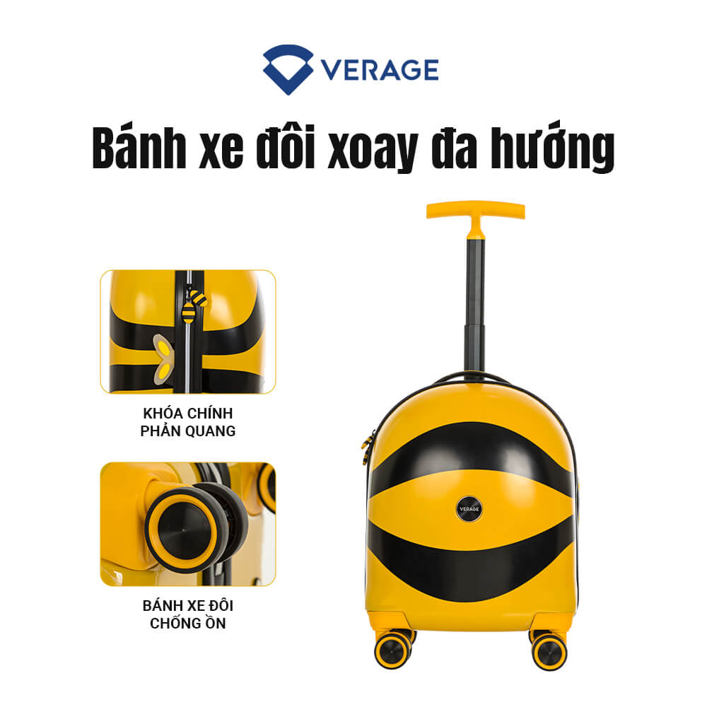 Nằm trong bộ sưu tập balo, vali trẻ em của Verage được ra mắt cách đây không lâu, chú ong vàng Verage GM20056W với màu sắc bắt mắt, thiết kế đáng yêu và được làm từ chất liệu nhựa PC + ABS với trọng lượng nhẹ và cực kì bền bỉ, chống thấm nước giúp bảo vệ hành lý bên trong của trẻ.