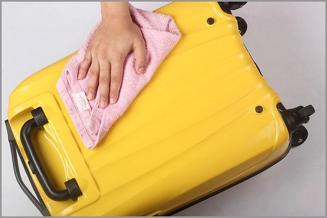 Dùng khăn mềm hoặc khăn giấy khô lau qua bề mặt vali để loại bỏ bụi và mốc.