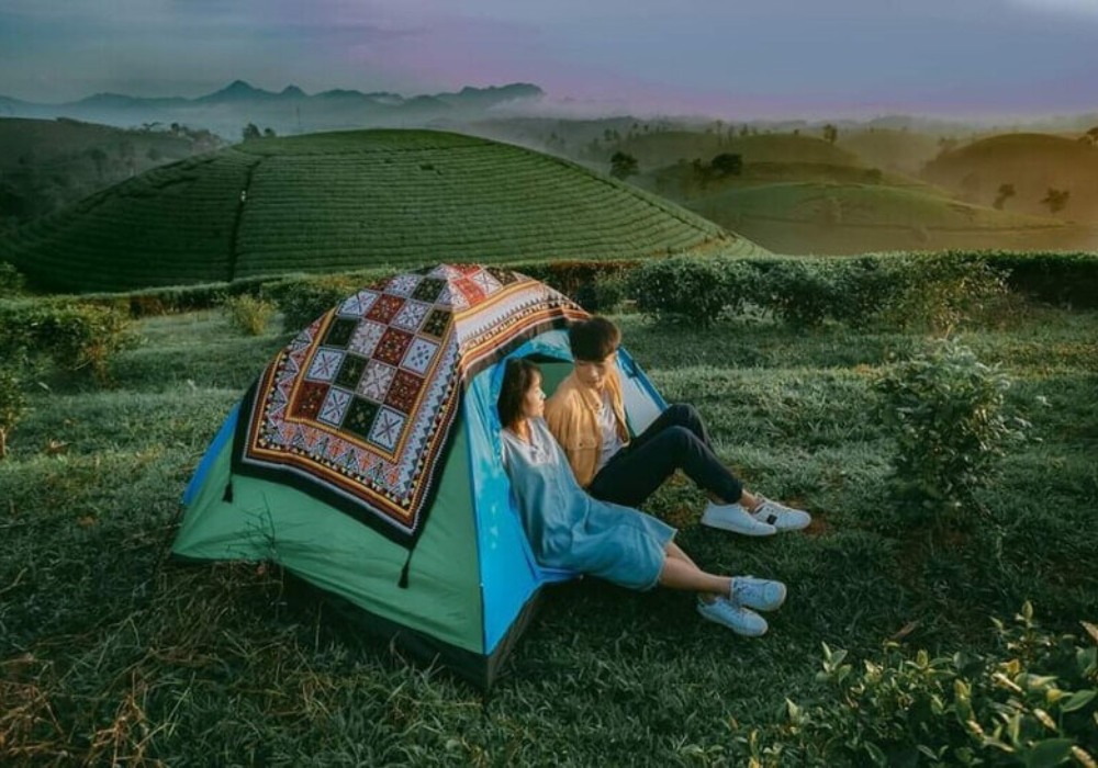 Nếu đi theo nhóm, bạn có thể chuẩn bị lều trại và một vài món ăn nhẹ để cắm trại ngay trên đồi chè. Gió mát, cảnh đẹp và không gian yên tĩnh là những điều tuyệt vời cho một buổi picnic cuối tuần. Tuy nhiên, bạn nên hỏi xin phép người dân địa phương hoặc bảo vệ khu vực trước khi cắm trại để đảm bảo an toàn và tôn trọng cảnh quan nhé!