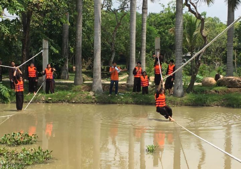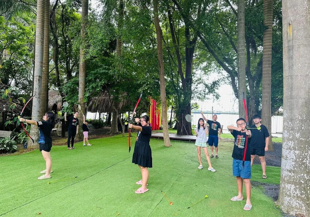 Bên cạnh tham quan, khu du lịch còn tổ chức nhiều trò chơi mang tính vận động và gắn kết tập thể như: chèo thuyền, đạp thiên nga, đi dây, cầu tuột, bắn cung, kéo co, nhảy bao bố… Đây là lựa chọn lý tưởng cho các buổi team building, sinh hoạt ngoại khóa hoặc chuyến đi gia đình có trẻ nhỏ.