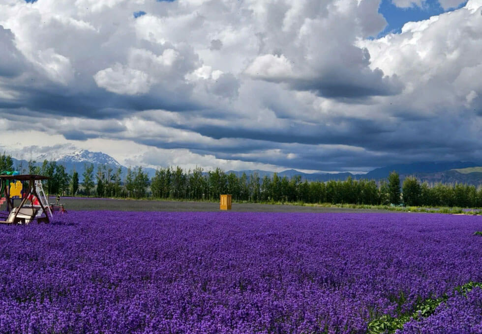 Cánh đồng hoa oải hương: Theo kinh nghiệm du lịch Tân Cương, nơi đây sẽ mang đến cho khách tham quan một trải nghiệm khó quên bởi sự xinh đẹp của thiên nhiên và hoa cỏ. Nơi đây mang vẻ đẹp tinh khôi được tác tạo bởi các đồng hoa oải hương trải dài mênh mông qua từng bề mặt của thung lũng Hongcheng.