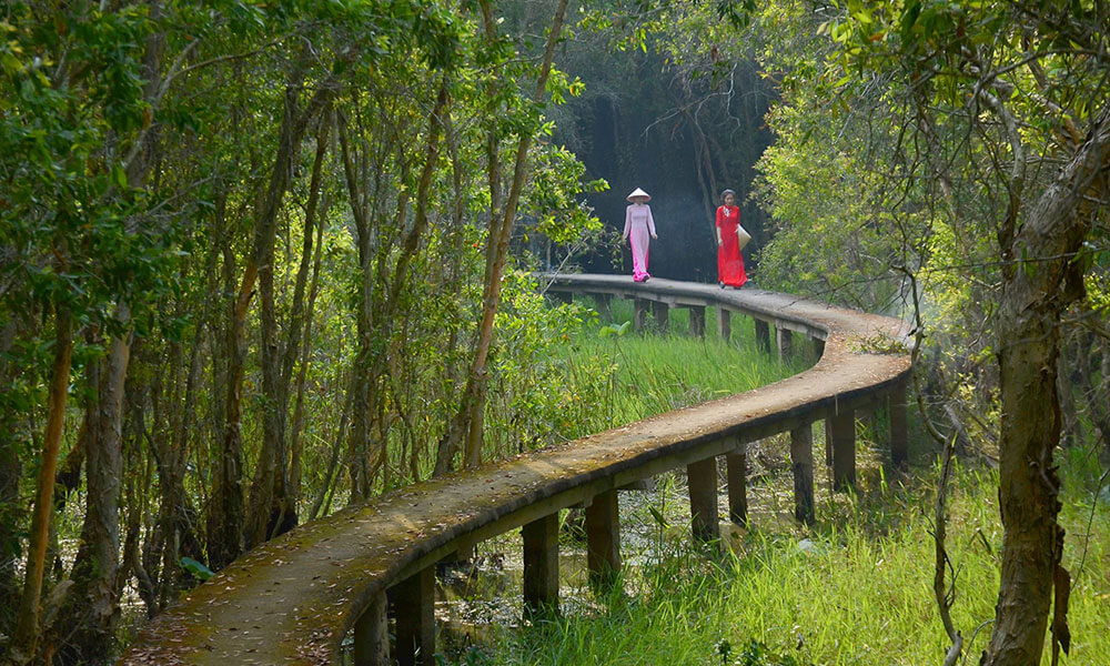 Cảm giác đi giữa con đường bao quanh là rừng cây xay mát sẽ mang đến cảm giác thú vị như đang lạc bước vào thế giới đầy yên bình và dễ chịu. Ở hai bên đường, thỉnh thoảng du khách sẽ bắt gặp những loài chim quý hiếm hoặc những đàn cá bơi lội dưới những con kênh nhỏ.