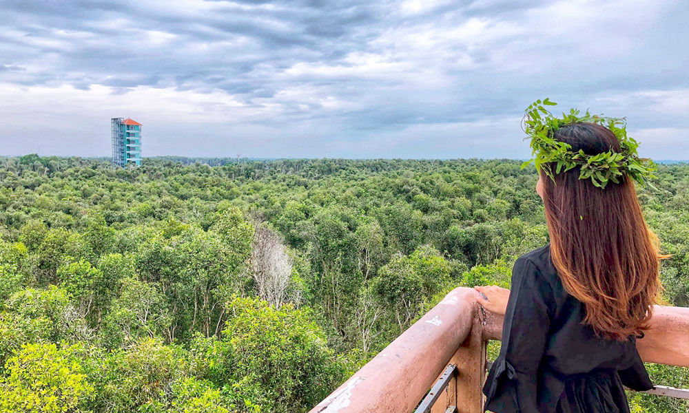 Ngắm nhìn toàn cảnh rừng tràm qua tháp quan sát cao vút
