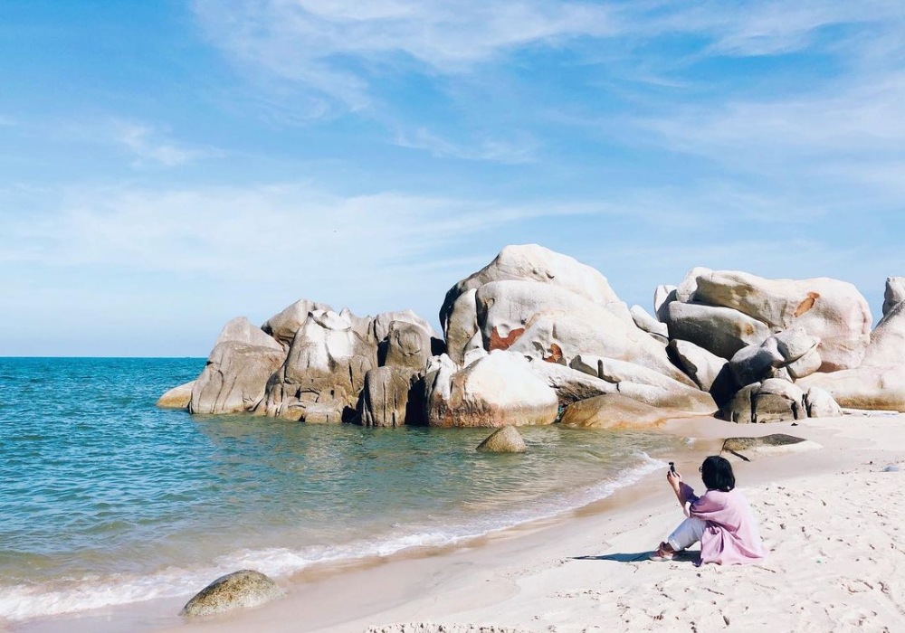 Nếu chưa biết Mũi Kê Gà có gì chơi, bạn hãy thử ghé Vịnh Đá Nhảy. Tại nơi đây, những khối đá muôn hình vạn trạng sẽ nằm trải dài bên bờ biển xanh trong. Khung cảnh ở đây thay đổi theo ánh nắng và thủy triều, lúc bình minh hay hoàng hôn lại càng rực rỡ, rất hợp để check-in sống ảo hay đơn giản là tận hưởng thiên nhiên hoang sơ, yên bình.