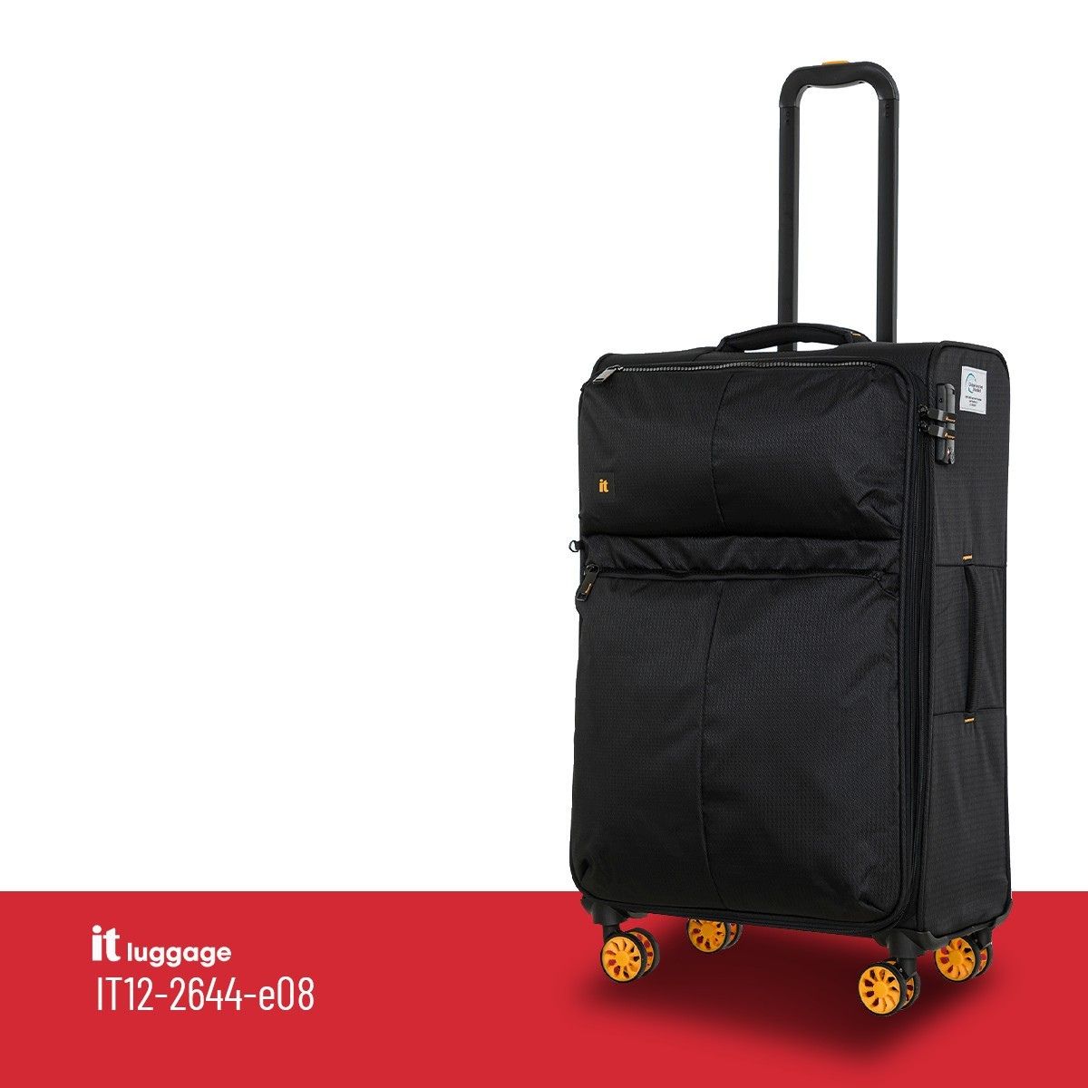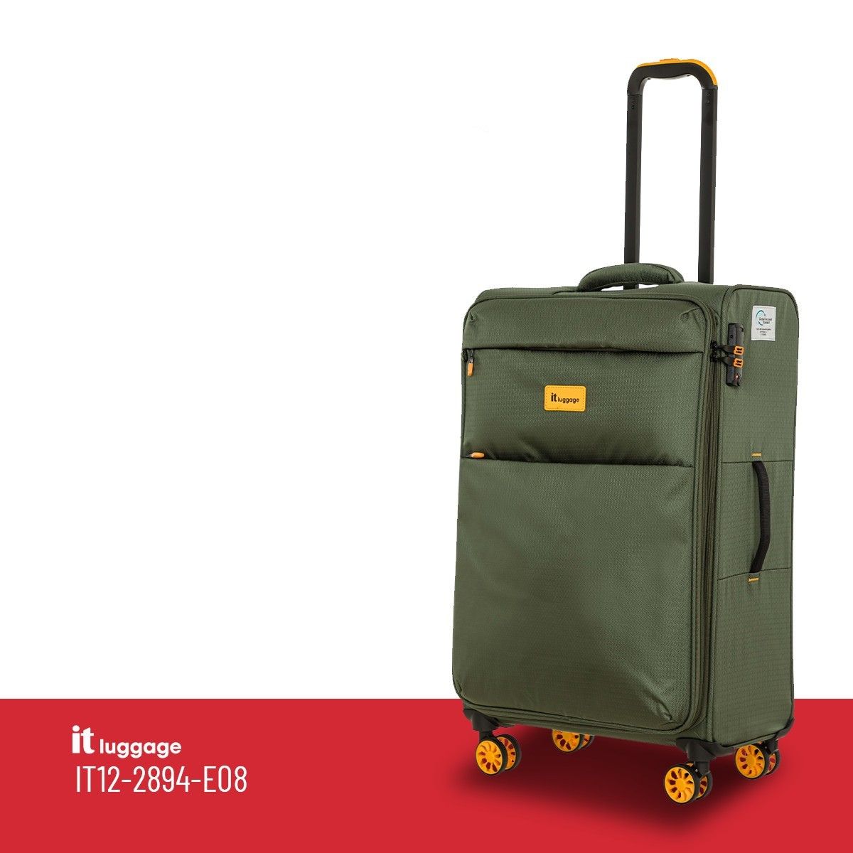 Chiếc vali IT12-2894E08 đến từ thương hiệu IT Luggage (Anh Quốc) ghi điểm mạnh mẽ với chất liệu Polyester 100% tái chế từ chai nhựa PET – một điểm cộng về độ bền lẫn yếu tố thân thiện môi trường.