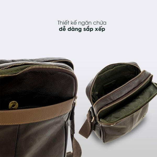 Túi đeo chéo Country Hide H25041 có thiết kế thời trang và thanh lịch với hai ngăn chính rộng rãi và nhiều ngăn phụ để cất giữ đồ đạc.2 ngăn chính lớn thoải mái chứa đựng điện thoại, ví, hộ chiếu, sạc dự phòng,.. còn ngăn phụ nhỏ hơn có thể chứa thẻ xe, chìa khoá.