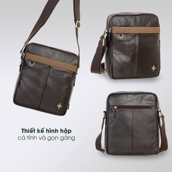 Túi đeo chéo hình hộp H25041 với thiết kế hiện đại, thanh lịch cùng chất liệu da bò thật 100% bền bỉ và sang trọng, kích thước nhỏ gọn phù hợp cho mọi hoạt động, từ đi làm, đi chơi đến du lịch.