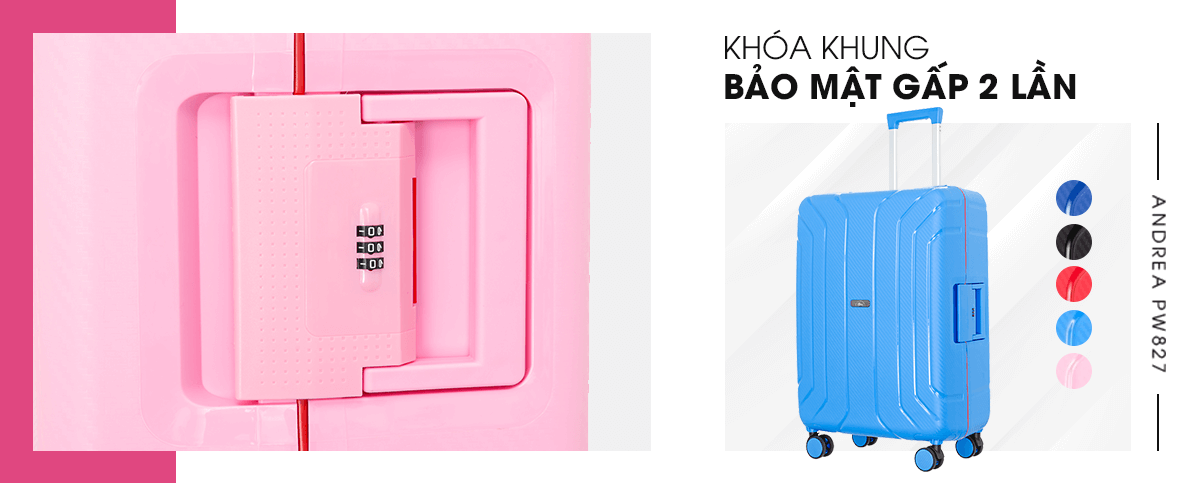 Vali Andrea PW827 được thiết kế khóa khung giúp tăng độ bảo mật gấp 2 lần an tâm trên mọi chuyến hành trình. Bạn có thể yên tâm vali Andrea PW827 sẽ luôn được đảm bảo an toàn, không bị phá khóa cũng như bị rạch ở sân bay, đây cũng chính là điểm khác biệt khiến chiếc vali này nổi bật và được nhiều người lựa chọn.