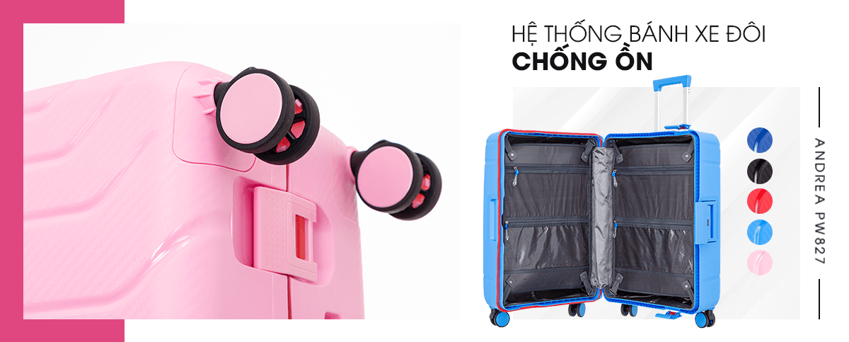 Hệ thống bánh xe êm ái giúp bạn di chuyển hoàn hảo trên mọi địa hình cùng khả năng chống ồn chống sốc, thoải mái kéo nhẹ lướt êm.
