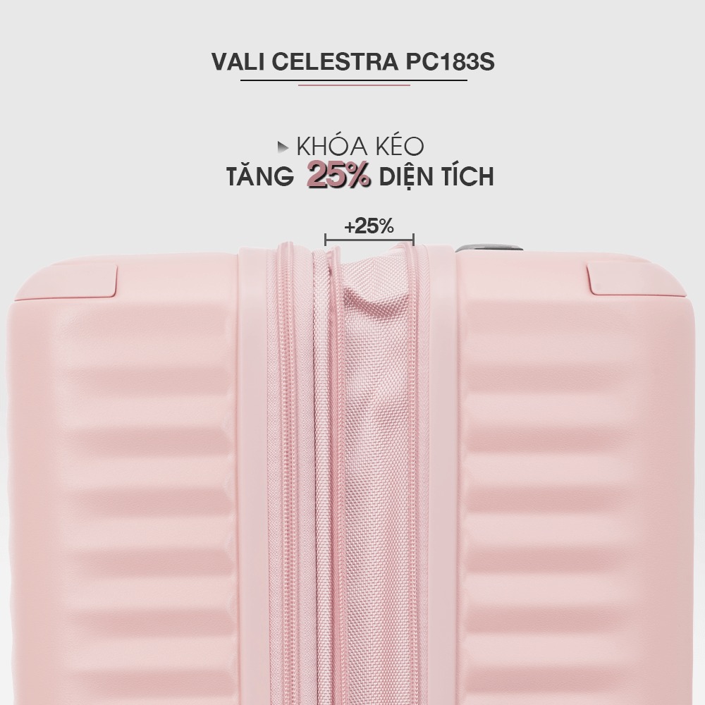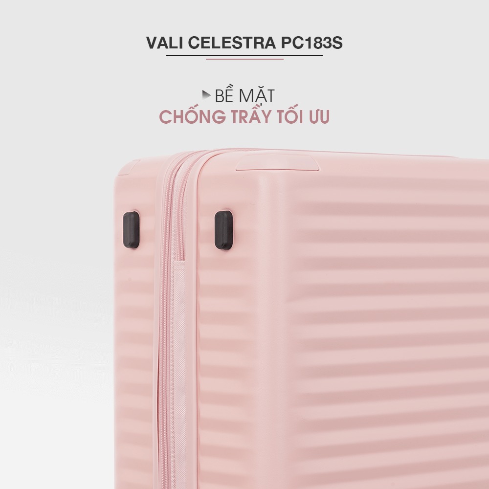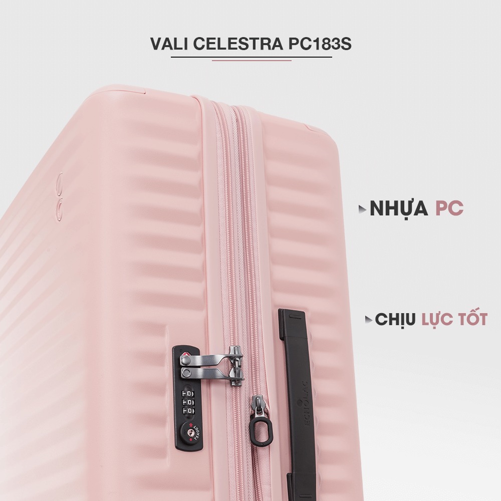 Được hoàn thiện bởi chất liệu nhựa PC với khả năng chịu lực tốt, hạn chế bể vỡ, hư hỏng hành lý đáng tiếc.