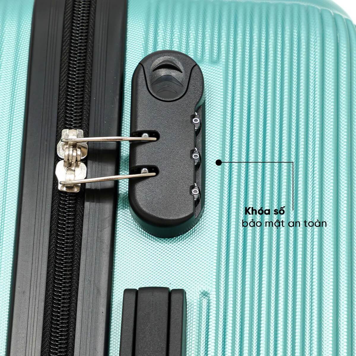 Thiết kế khóa số 3 bánh răng tích hợp trên thân vali MD24135 giúp đảm bảo độ bảo mật an toàn trong quá trình di chuyển, hạn chế bị mất cắp