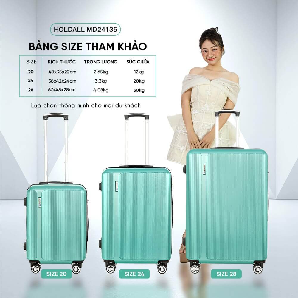 Holdall MD24135 là BST vali đa sắc màu trẻ trung với thiết kế nhẹ nhàng, đầy đủ các tiện ích hành lý cơ bản và độ bền ổn định cho những chuyến dịch chuyển