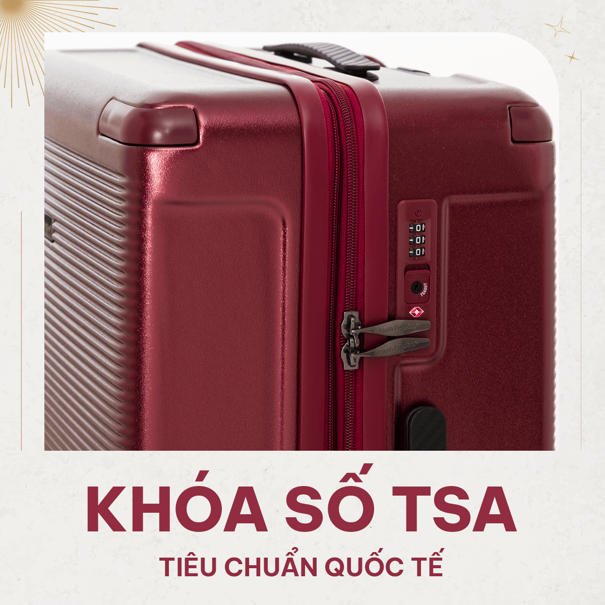 Sản phẩm được tích hợp hệ thống khoá số TSA đạt tiêu chuẩn Quốc Tế, giúp bạn hạn chế các rủi ro khi nhân viên an ninh sân bay cần kiểm tra hành lý đột xuất