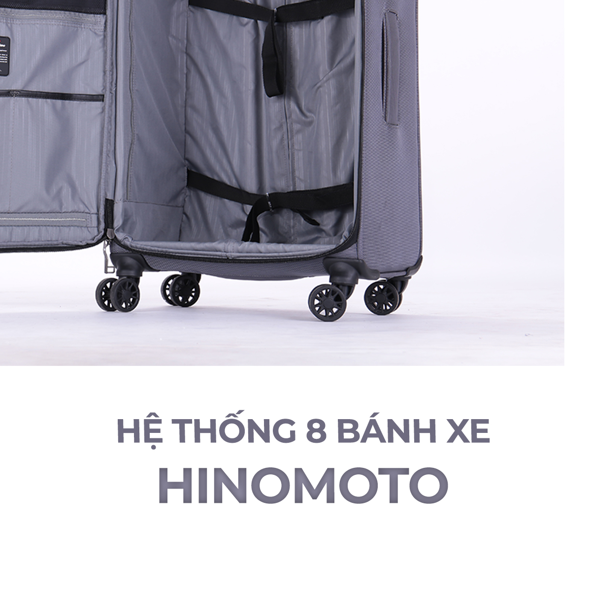 Nhà máy Hinomoto là nhà máy Nhật Bản sản xuất bánh xe oto lớn nhất thế giới. Không quá khó hiểu khi những mẫu vali du lịch 8 bánh như CT714 sử dụng bánh xe của hãng này thường rất êm ái, di chuyển mượt mà, linh hoạt với khả năng xoay 360 độ. Vỏ bánh xe làm bằng cao su thiên nhiên đúc nguyên khối hạn chế ma sát với mặt đường, không gây tiếng ồn khi kéo vali trên sàn gỗ, bao quanh khung nhựa lõi cốt thép chắc chắn, chịu tải trọng lớn hơn nhiều lần so với trọng lượng sản phẩm