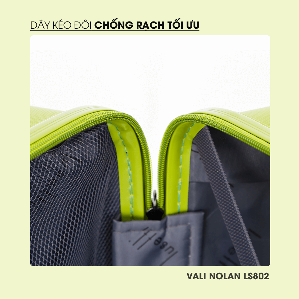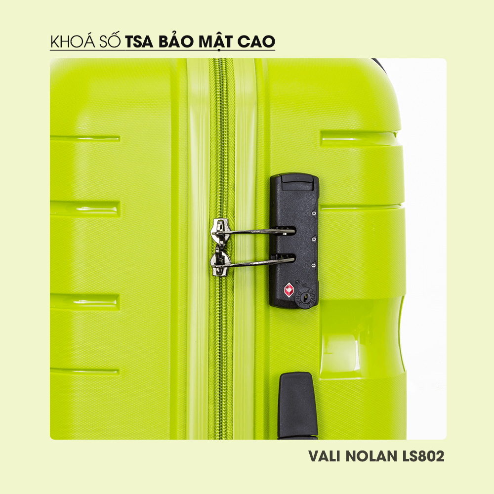 Vali Lusetti Nolan LS802 được trang bị thêm khoá số TSA giúp hành lý của bạn được bảo mật tối ưu hơn, và khi nhân viên hải quan có nhu cầu kiểm tra hành lý chỉ cần sử dụng chìa khoá chuyên dụng mà không cần phá khoá như các loại khoá thông thường.