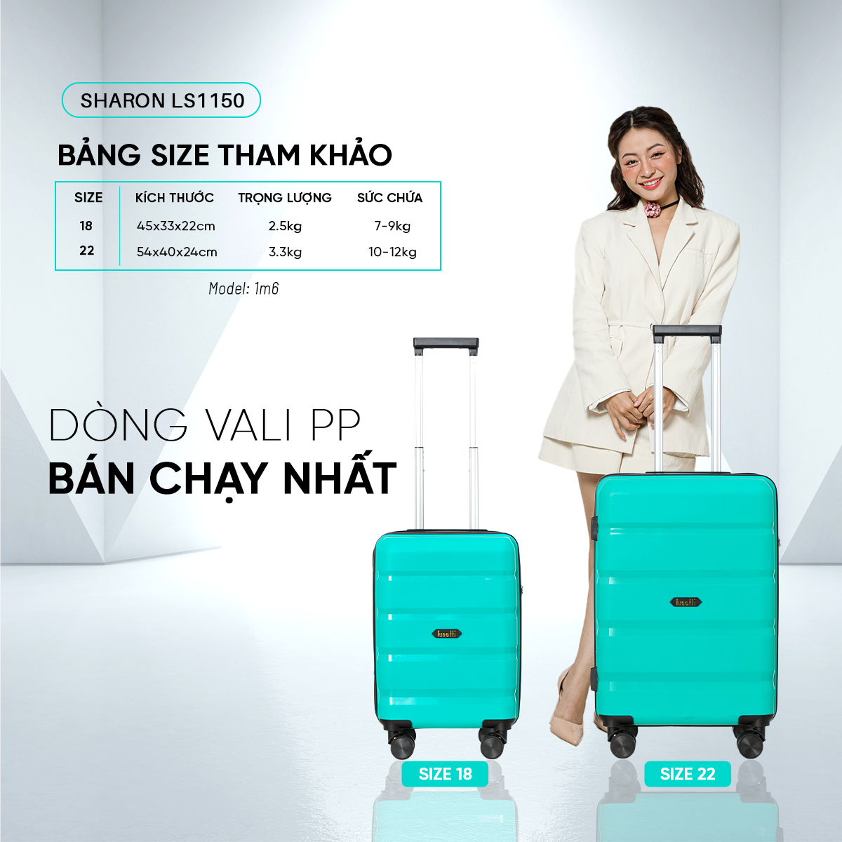 Vali Lusetti Sharon LS1150 có trọng lượng siêu nhẹ, chỉ 2,6kg tối ưu khối lượng hành lý xách tay cho bạn, giúp cho chuyến đi của bạn trở nên trọn vẹn hơn. Vali cũng có sức chứa tốt lên đến 7kg - 10kg để bạn thỏa thích chứa đựng hành lý của mình trong chuyến đi của mình.